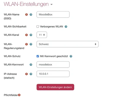 - WLAN-Name (SSID): MoodleBox