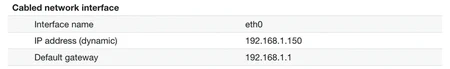 También se muestra el nombre de la interfaz, normalmente eth0, así como la dirección IP de la MoodleBox, obtenida mediante DHCP, y la dirección de la puerta de enlace predeterminada.